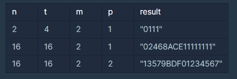 3. 진법 n, 미리 구할 숫자의 개수 t, 게임에 참가하는 인원 m, 튜브의 순서 p 가 주어진다.