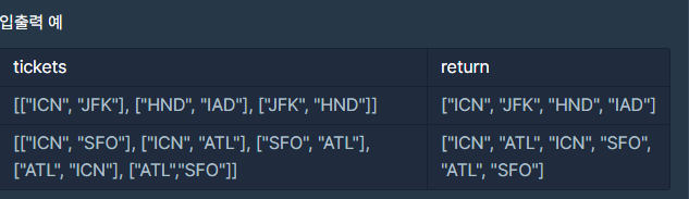 3. 항공권 정보가 담긴 2차원 배열, 방문하는 공항 경로를 배열에 담아 return